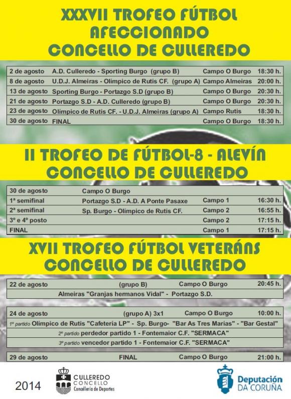 O máis tradicional, o de Fútbol Afeccionado, terá lugar durante todo o mes nos diferentes campos do municipio. A final desenvolverase o 30 de agosto no campo do Burgo.