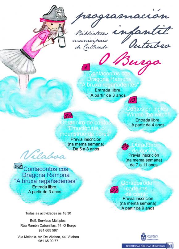 Xa se publicou o programa de actividades infantís ata decembro para as bibliotecas municipais 'Manuel González Garcés' (O Burgo) e 'Xosé Cardeso Liñares' (Vilaboa), que comezarán no mes de outubro.