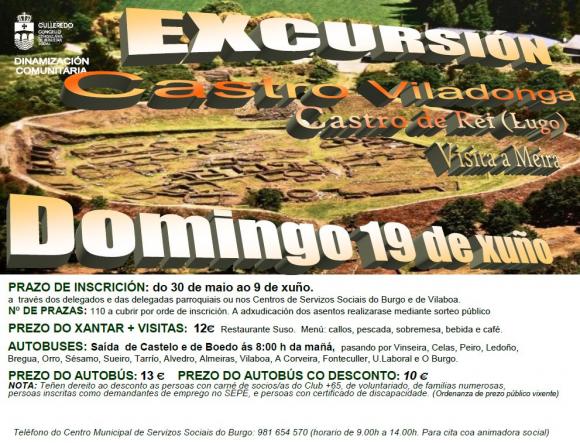 O vindeiro domingo 19 de xuño a excursión será ao castro de Viladonga, en Castro de Rei (Lugo), incluíndo unha visita á localidade de Meira.