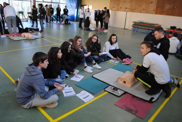 En pequenos grupos, os mozos do IES foron practicando con bonecos de tamaño humano a forma de realizar a actuación. Este sinxelo procedemento de resucitación cardíaca, orientado ás persoas non profesionais, consiste exclusivamente na masaxe cardíaca golpeando o peito da persoa en parada , e xa non leva imprescindiblemente aparellado o complexo "boca a boca" que tanto intimidaba a quen se atopaba fronte a unha persoa nestas circunstancias.
