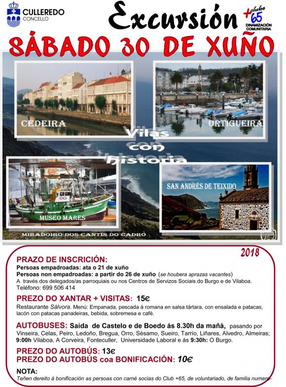 O Concello de Culleredo, dentro do seu programa de Dinamización Comunitaria dirixido a maiores de 65 anos, programou unha viaxe a Cedeira e Ortigueira para o 30 de xuño.