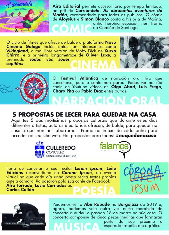 O Concello de Culleredo propón unha serie de accións culturais durante o tempo que dure o estado de alarma.