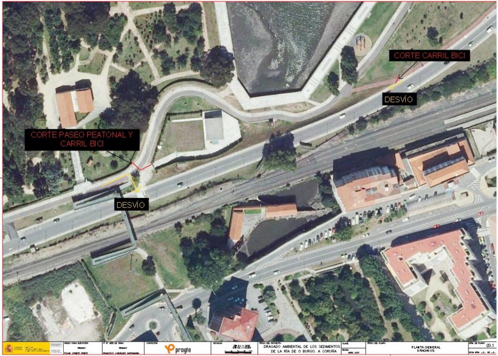 Por traballos tamén vinculados a este proxecto, procederase ao corte de tránsito peonil e ciclista na parte do Paseo Marítimo coincidente coa estación de bombeo de Acea de Ama, xunto ao xardín botánico, ofrecendo como alternativa a propia beirarrúa da avenida Juan Carlos Primeiro.