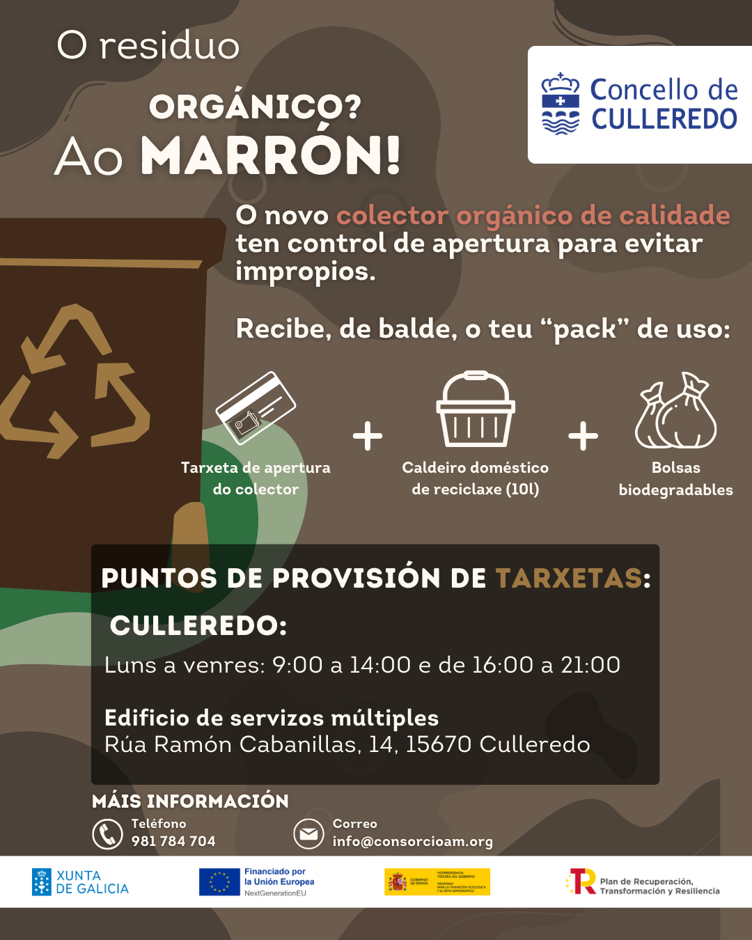 Se aínda non tes a túa tarxeta, podes recollela no Edificio de Servizos Múltiples do Burgo de luns a venres en horario de 9:00 a 14:00 horas e de 16:00 a 21:00 horas. Podes solicitar máis información no 981 784 704 ou no correo electrónico info@consorcioam.org.