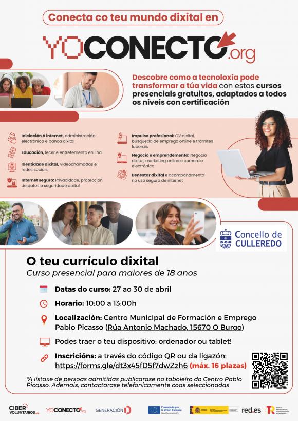 O Concello de Culleredo organiza, en colaboración con cibervoluntarios.org, o plan de formación YoConecto durante os meses de abril, maio e xuño.